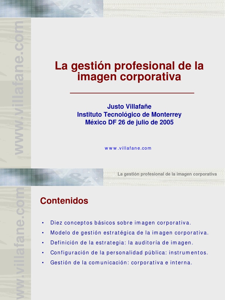 La gestion profesional de la imagen justo villafane pdf. La imagen es la traduccion sintetica que el publico se hace de todo cuanto recibe de los tres vectores inductores a traves de las diversas percepciones opiniones recibidas y experiencias propias vividas por los individuos. El contenido de. Una concepcion dinamica de la identidad. Dejate seducir por ohlibro pruebalo ya.