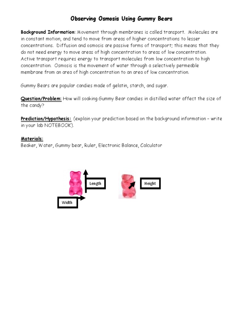Gummy Bear Osmosis Lab Pdf Na E O Pa E Pe I D Gummy Bear Osmosis