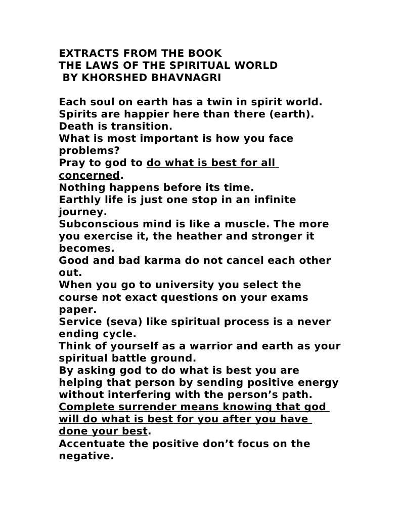 One month later a new one opened. Ask yourself what prevents you from being positive and working your way out of that situation. That is the lesson you need to learn. The laws of the spirit world by khorshed bhavnagri is a book that tells us about automatic writing spirits and life after death.