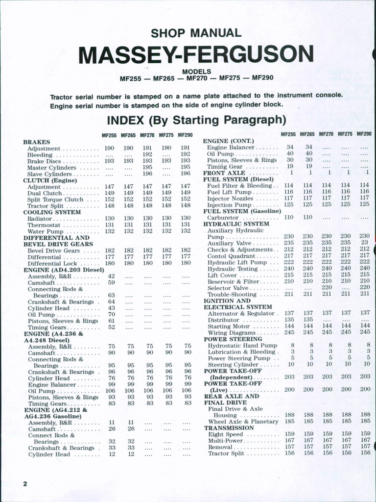 Massey Ferguson Mf255 Mf265 Mf270 Mf275 Mf290 Sm 01090 Pdf Axle Cylinder Engine