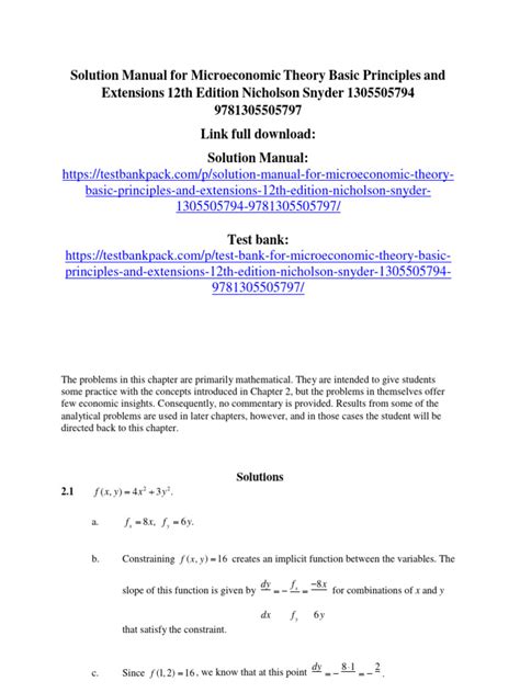 Nicholson And Snyder Microeconomic Theory Solutions Manual